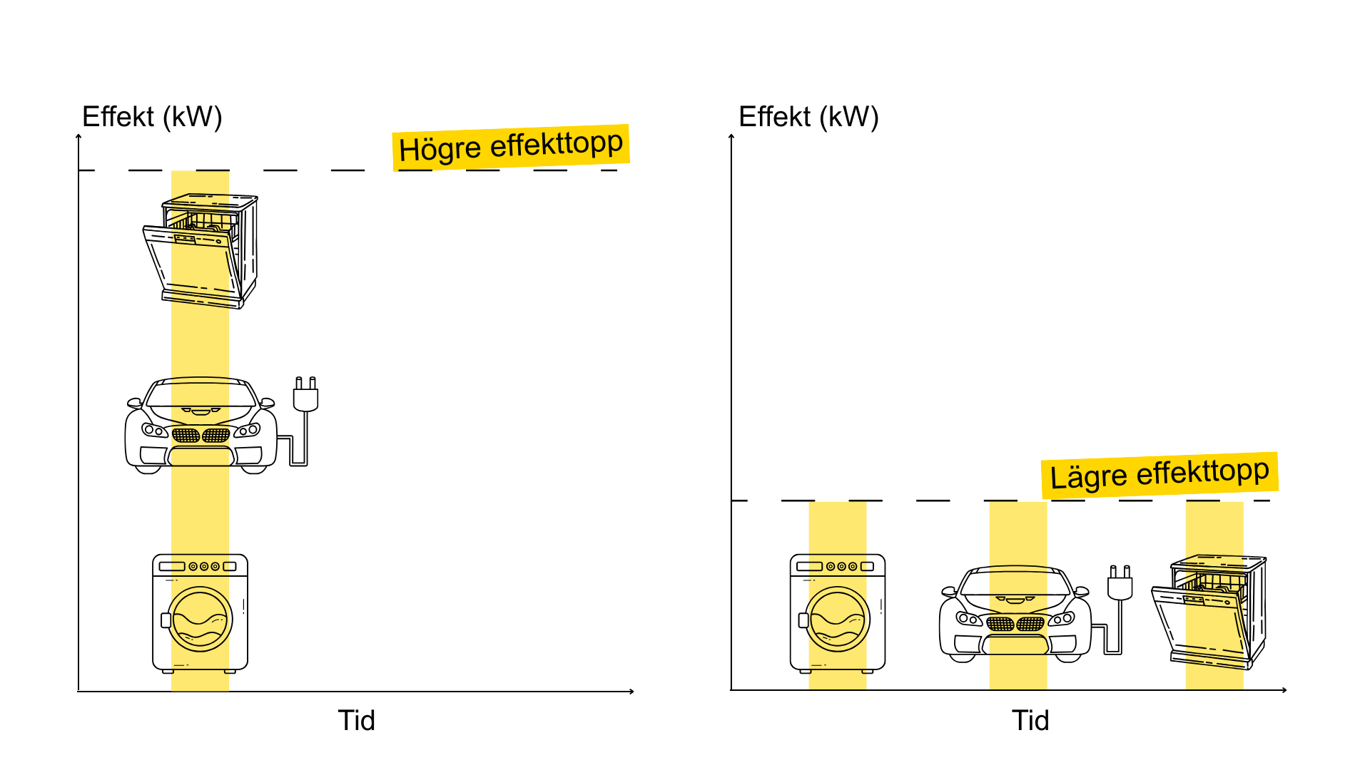 Genom att fördela din elanvändning jämnare över dagen kan du själv påverka din effektavgift och därmed din totala elkostnad.