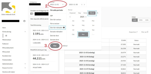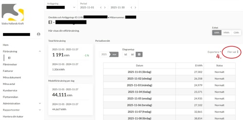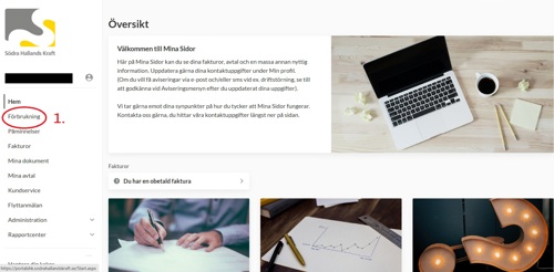 1. Inloggad på Mina Sidor, gå till menyn Förbrukning.